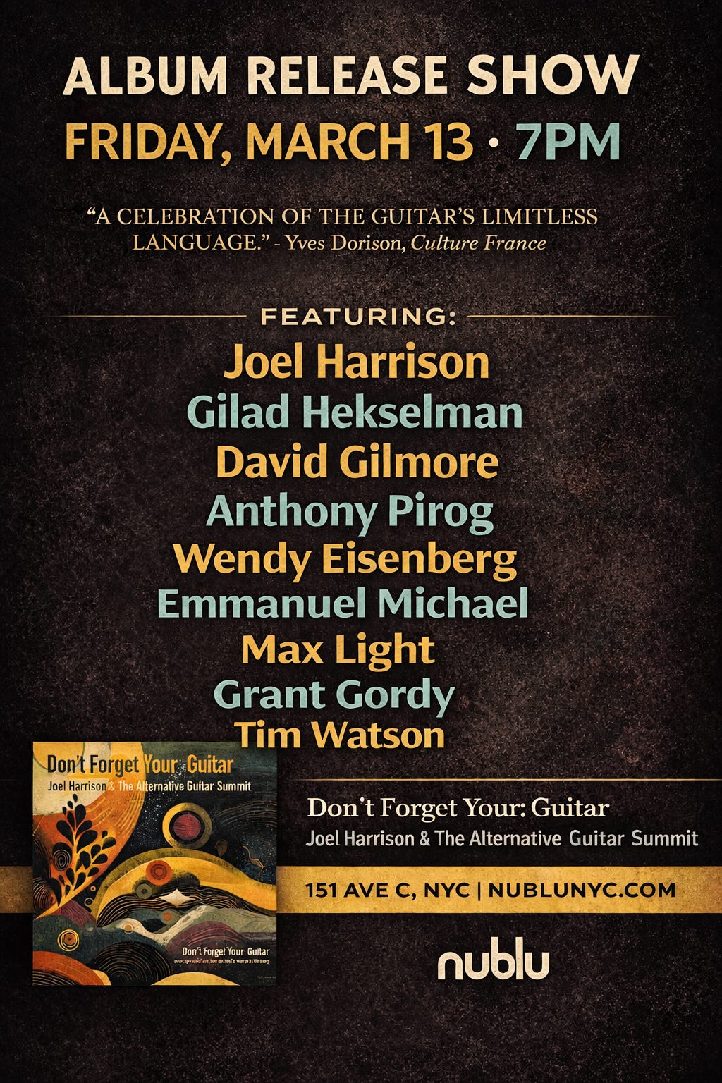 Tickets here: https://posh.vip/e/joel-harrison-presents-alternative-guitar-summit-2026-dont-forget-your-guitar-album-release-shows